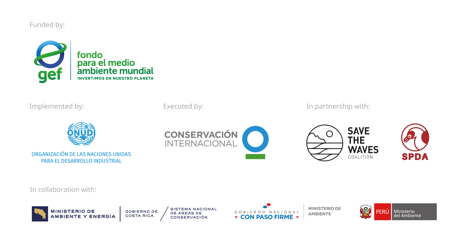 A regional project that conserves surf ecosystems and strengthens the blue economy in Costa Rica, Peru, and Panama, funded by the Global Environment Facility (GEF) and implemented by the United Nations Industrial Development Organization (UNIDO).